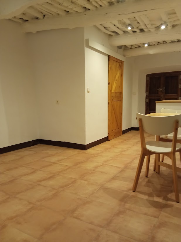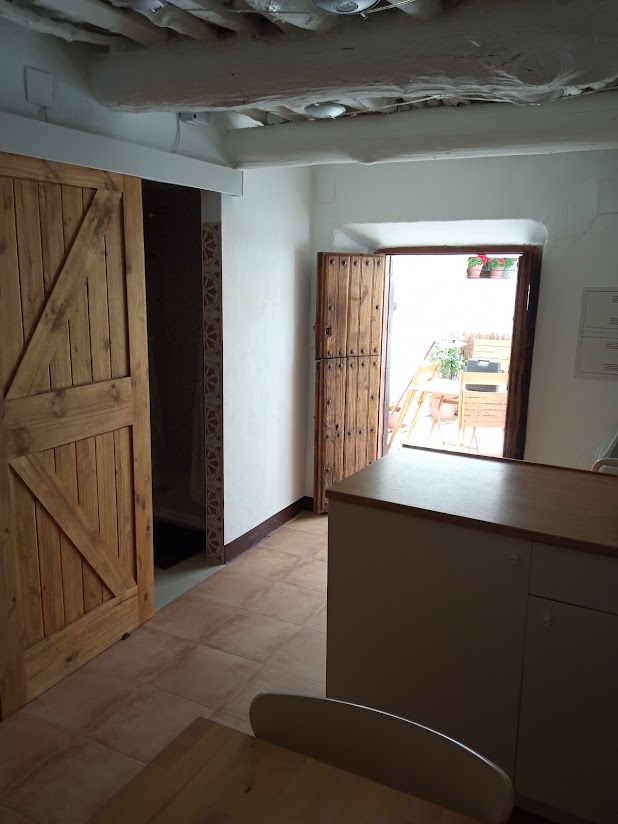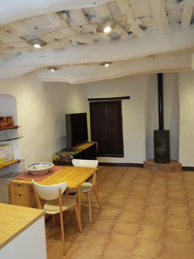 Por otro lado, el apartamento, ubicado sobre el bar, también dispone de un área de 64 metros cuadrados. Este espacio incluye una terraza, un baño, un salón-comedor con cocina, un dormitorio equipado con claraboya y un trastero adicional. Durante el día, se beneficia de abundante luz natural. Los trabajos de restauración se completaron en julio de 2024, conservando la esencia alpujarreña con vigas de castaño y alfajías. Los muebles de la cocina y del dormitorio son completamente nuevos, destacando una cama de 150x200. Tanto la instalación eléctrica como la fontanería han sido renovadas. Adicionalmente, se incorpora una estufa de leña de hierro fundido, también nueva.